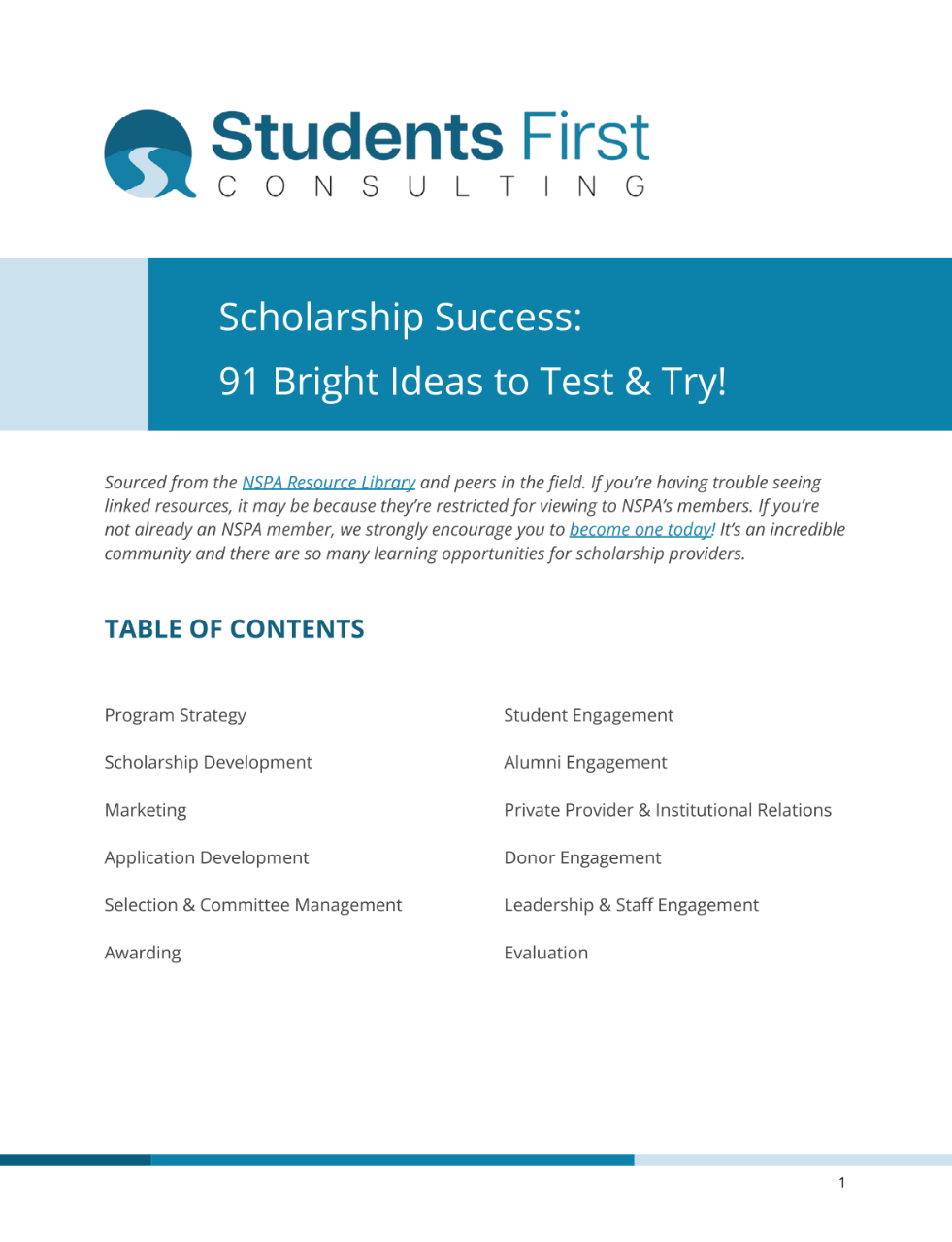 Our beloved guide to best and emergent practices in the field. We’ve crowd-sourced tons ideas from scholarship providers to inspire you. There’s something in here for every provider!