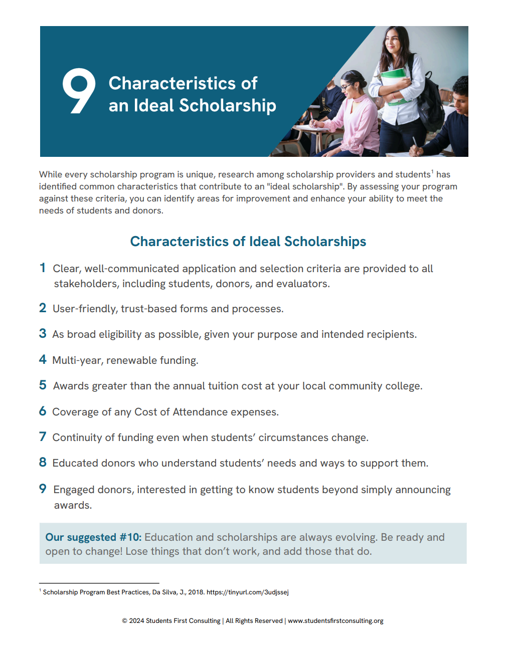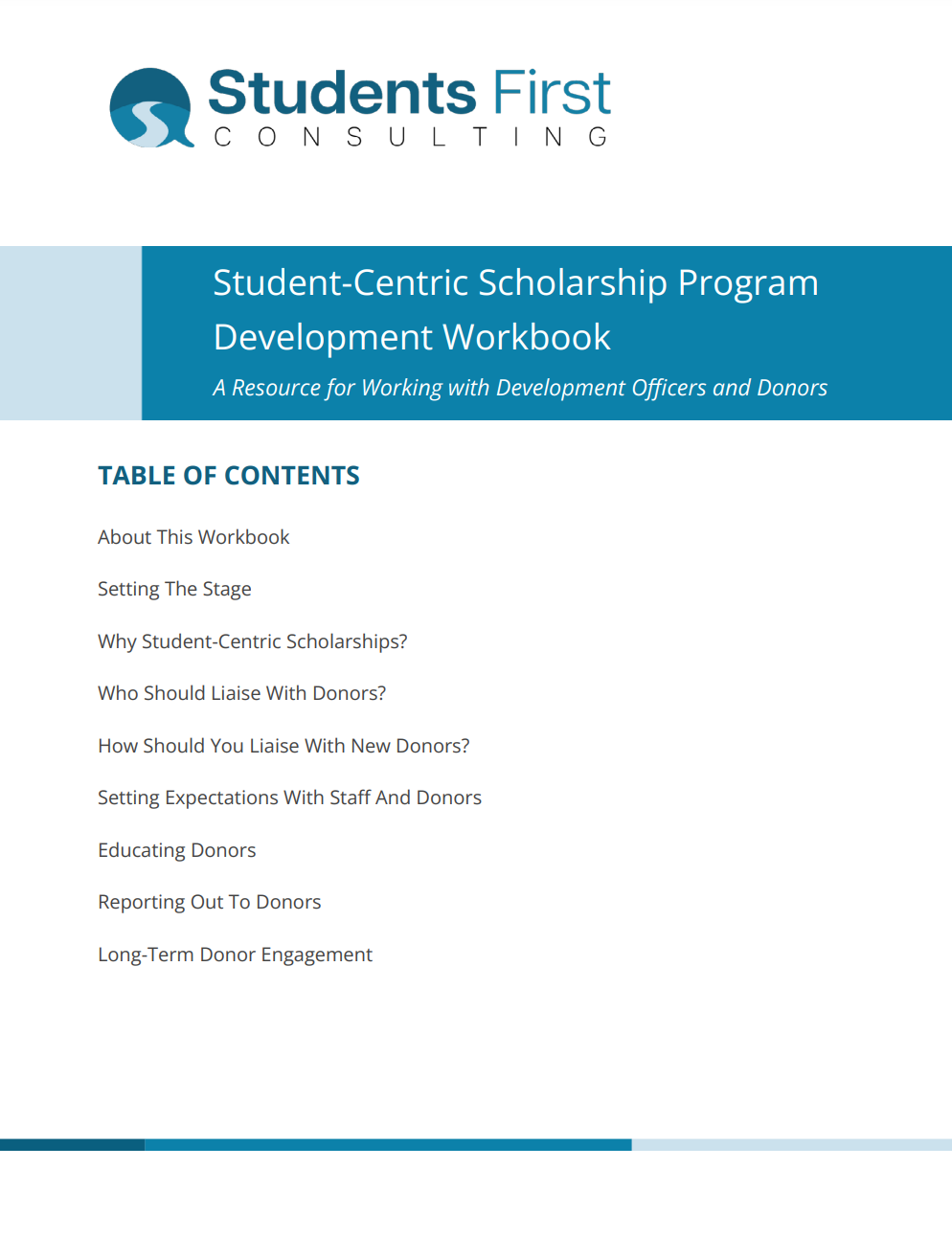 Want to improve the ways you and your team create new scholarship opportunities or funds? This resource is built to do just that, and includes practical worksheets, question prompts, and more to help improve the scholarship development process and prioritize students in doing so.